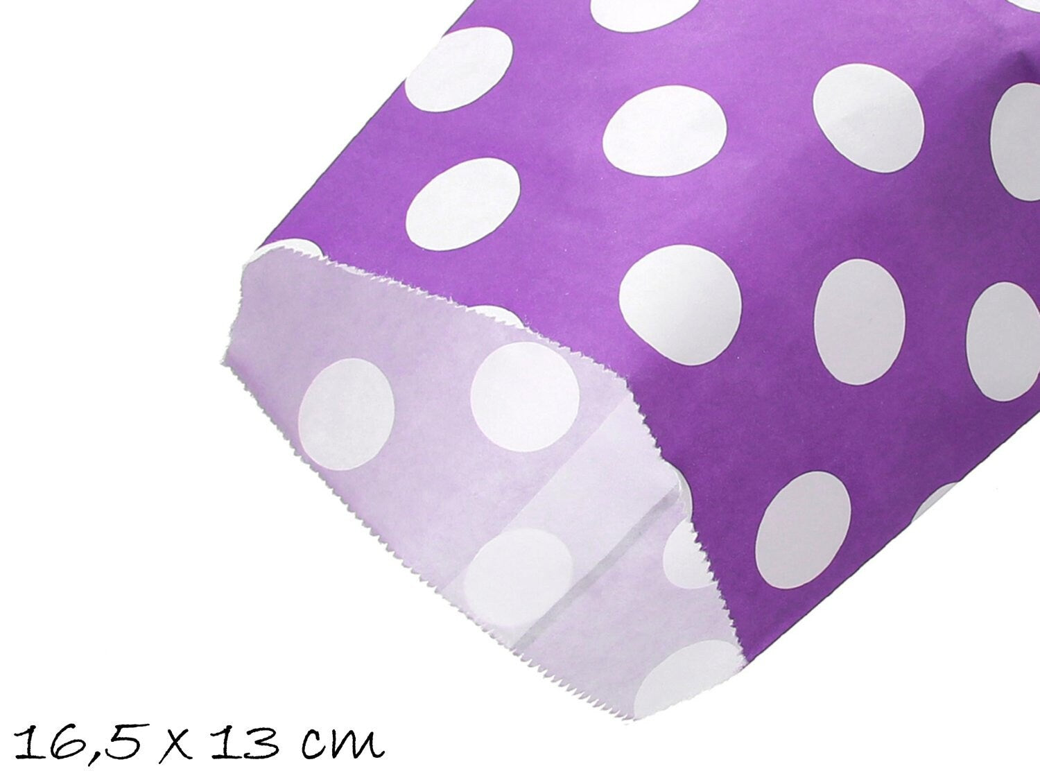 10 Papiertüten lila weiß gepunktet 13 x 16,5 cm