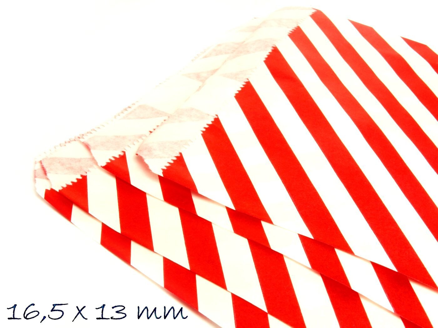 10 Papiertüten rot weiß Streifen 13 x 16,5 cm