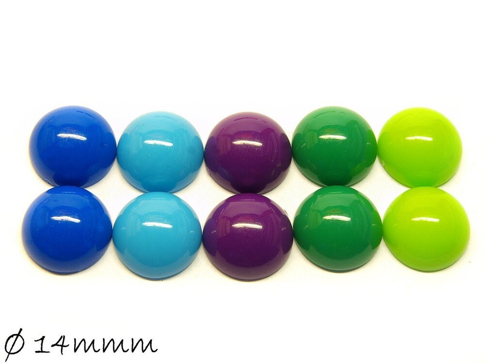 10 einfarbige Resincabochons in verschiedenen Farben, Durchmesser 14 mm