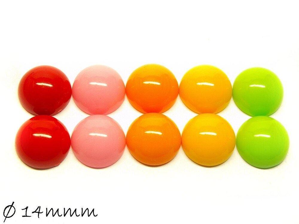 10 Stück runde Resin Cabochons einfarbig 14 mm Mix 2