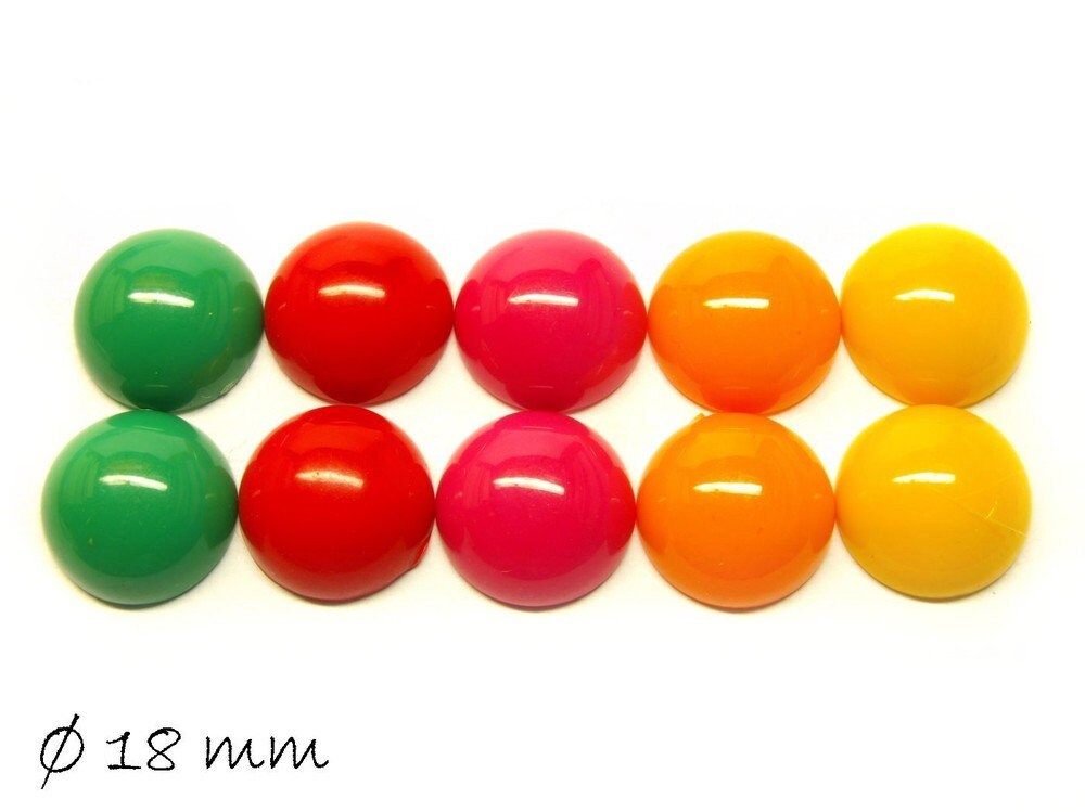 10 einfarbige Resincabochons in verschiedenen Farben, Durchmesser 18 mm