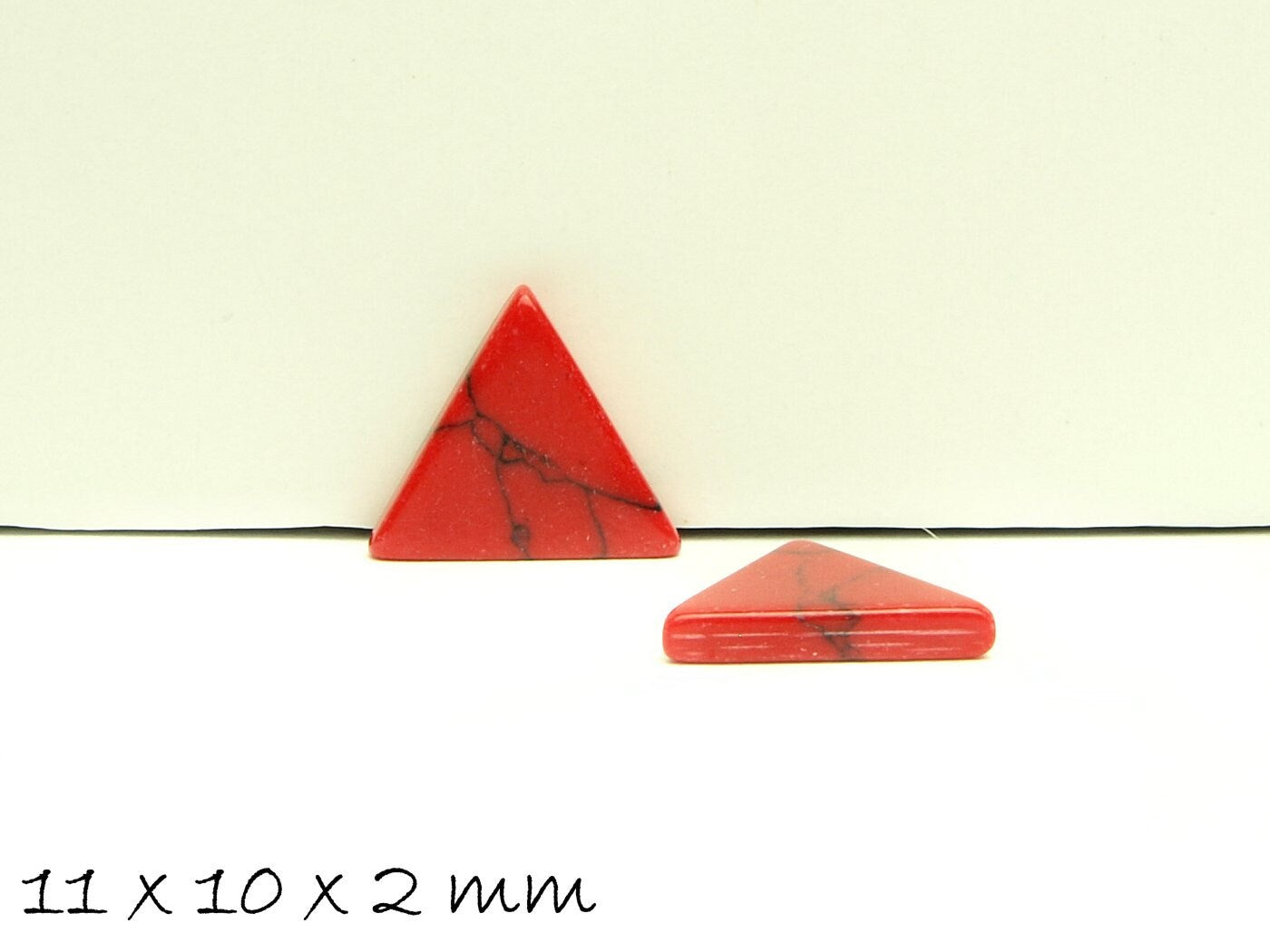 2 Stück Edelstein Cabochons, Dreieck, synthetischer Türkis, 11 x 10 mm, rot