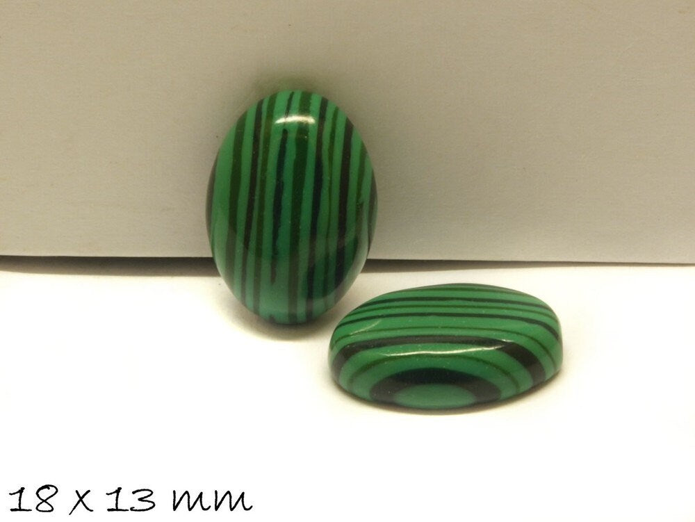 2 Stück Edelstein Cabochons, synthetischer Türkis (Malachit-Imitat), 18 x 13 mm