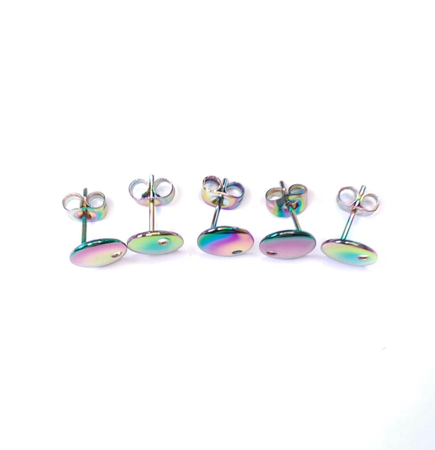 4 Stück Ohrstecker mit Öse aus Edelstahl, bunt - Regenbogen, rund, Scheibe, Ohrringe, 8 mm