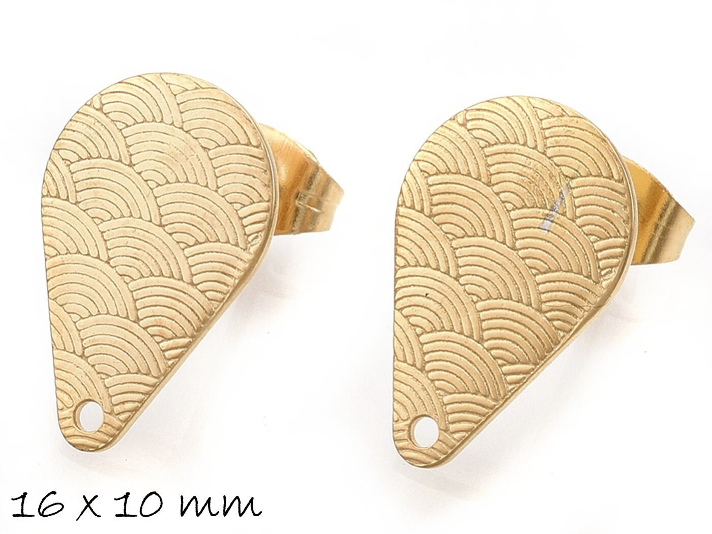4 Stück Ohrstecker mit Öse aus Edelstahl, gold, Tropfen mit Wellenmuster