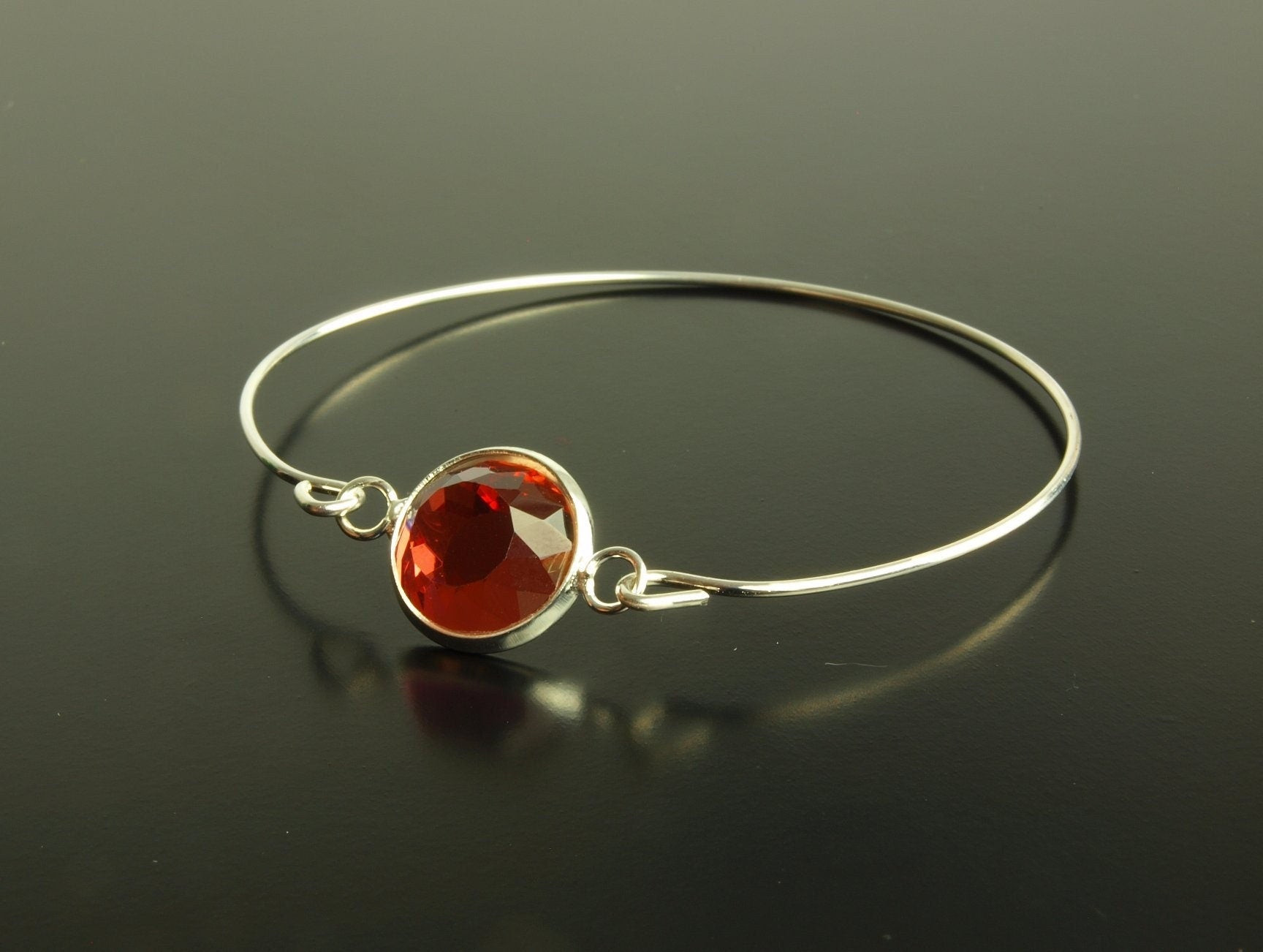 Dieser zarte Armreif mit einem facettierte Glas/Acryl Cabochon in Farbe nach Wahl sieht gleichzeitig schlicht und edel aus.