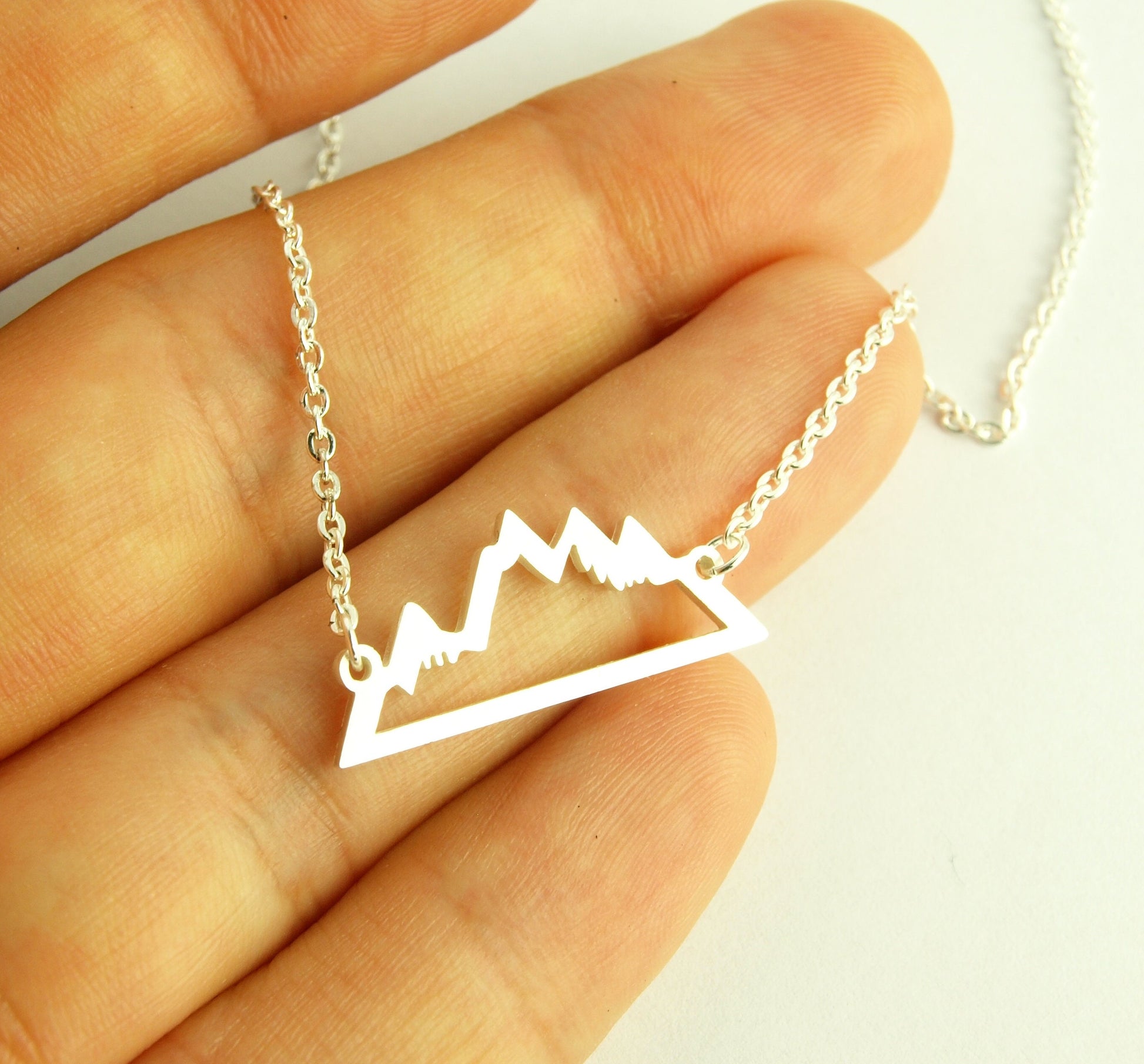 Kette Berge Schnee Landschaft geometrisch Edelstahl Anhänger silbern