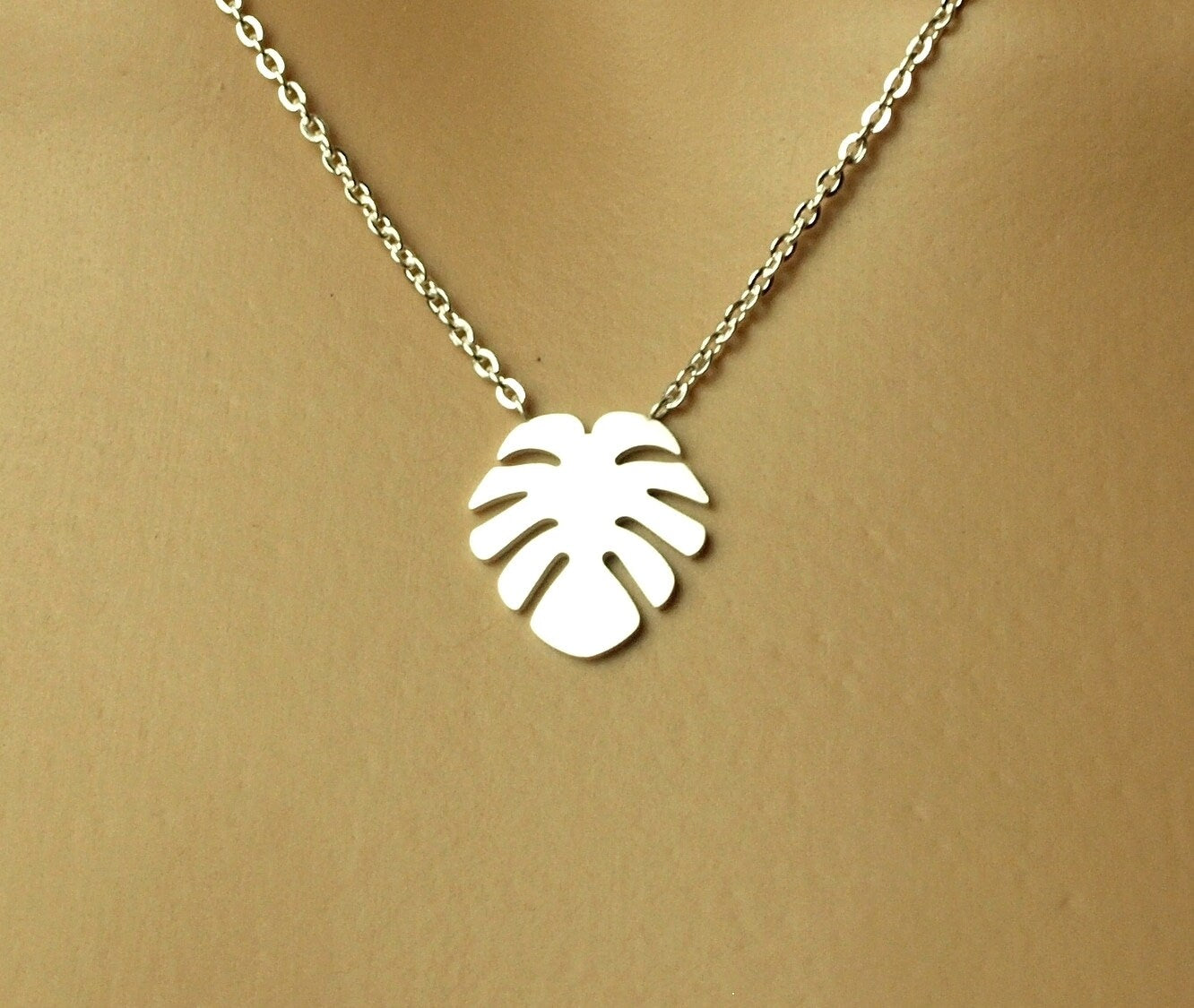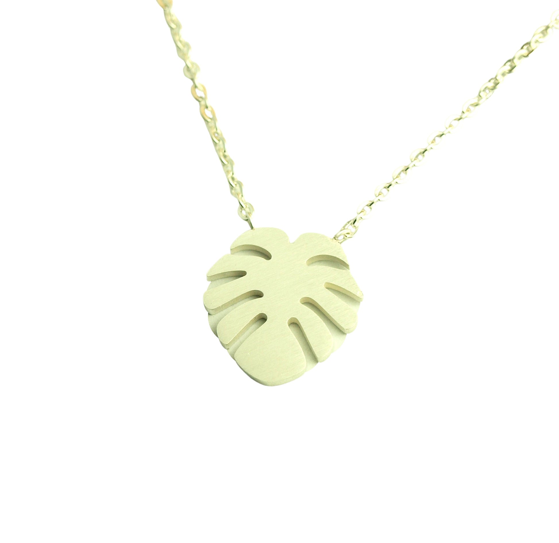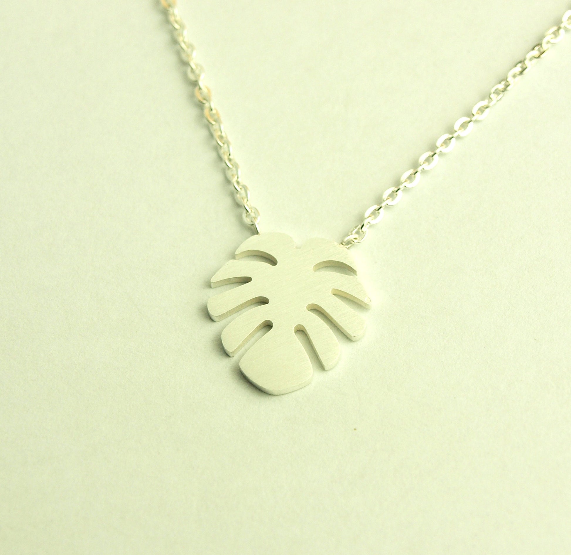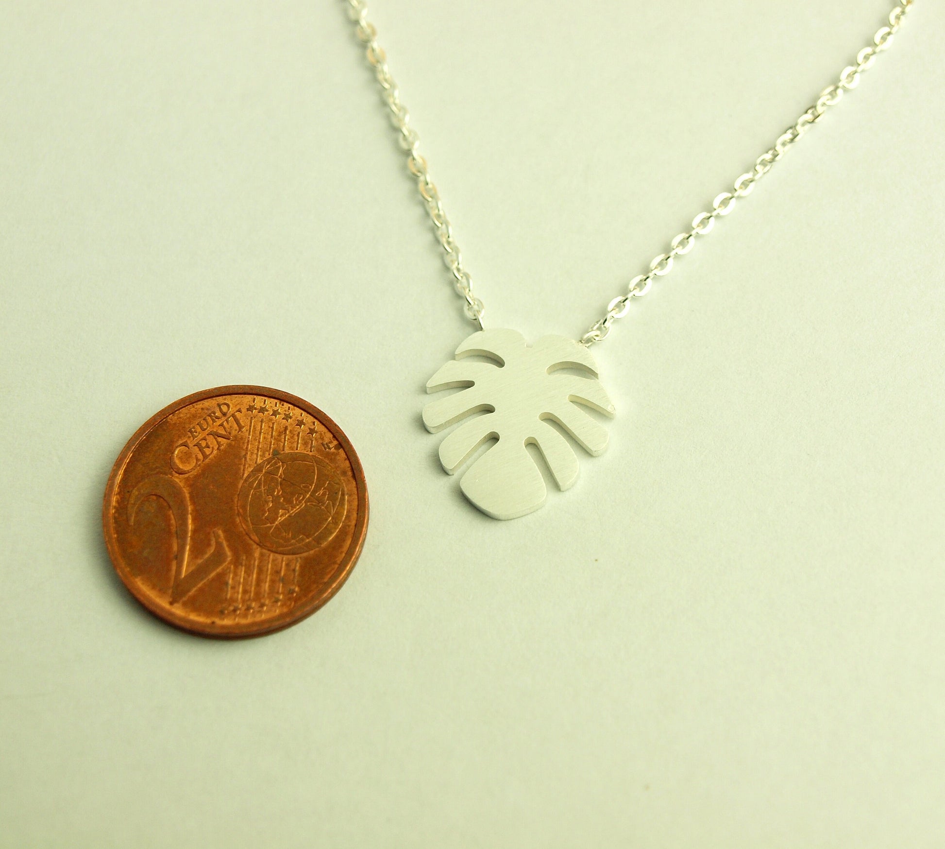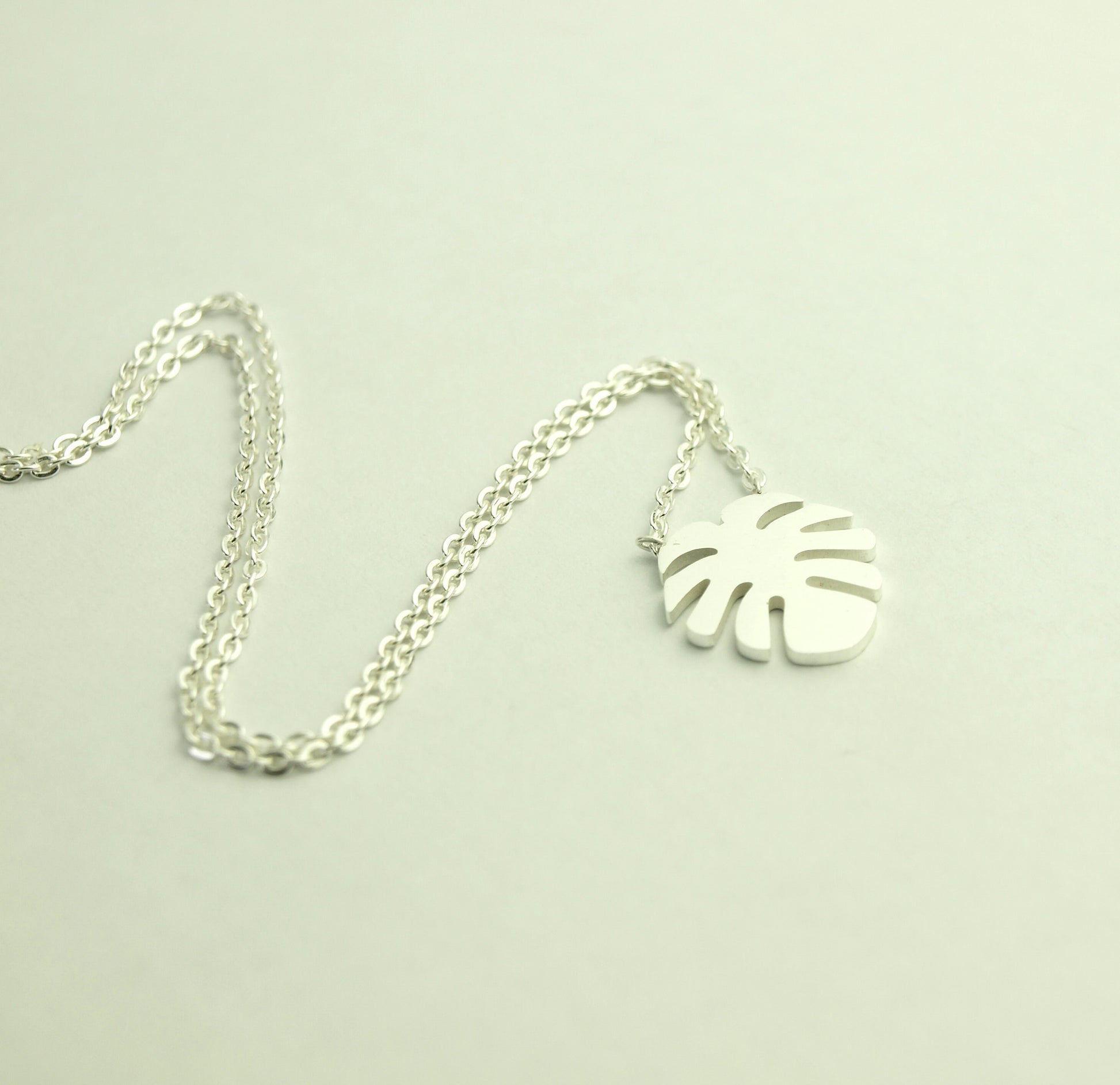 Kette Edelstahl Monstera Palme Blatt Anhänger silbern