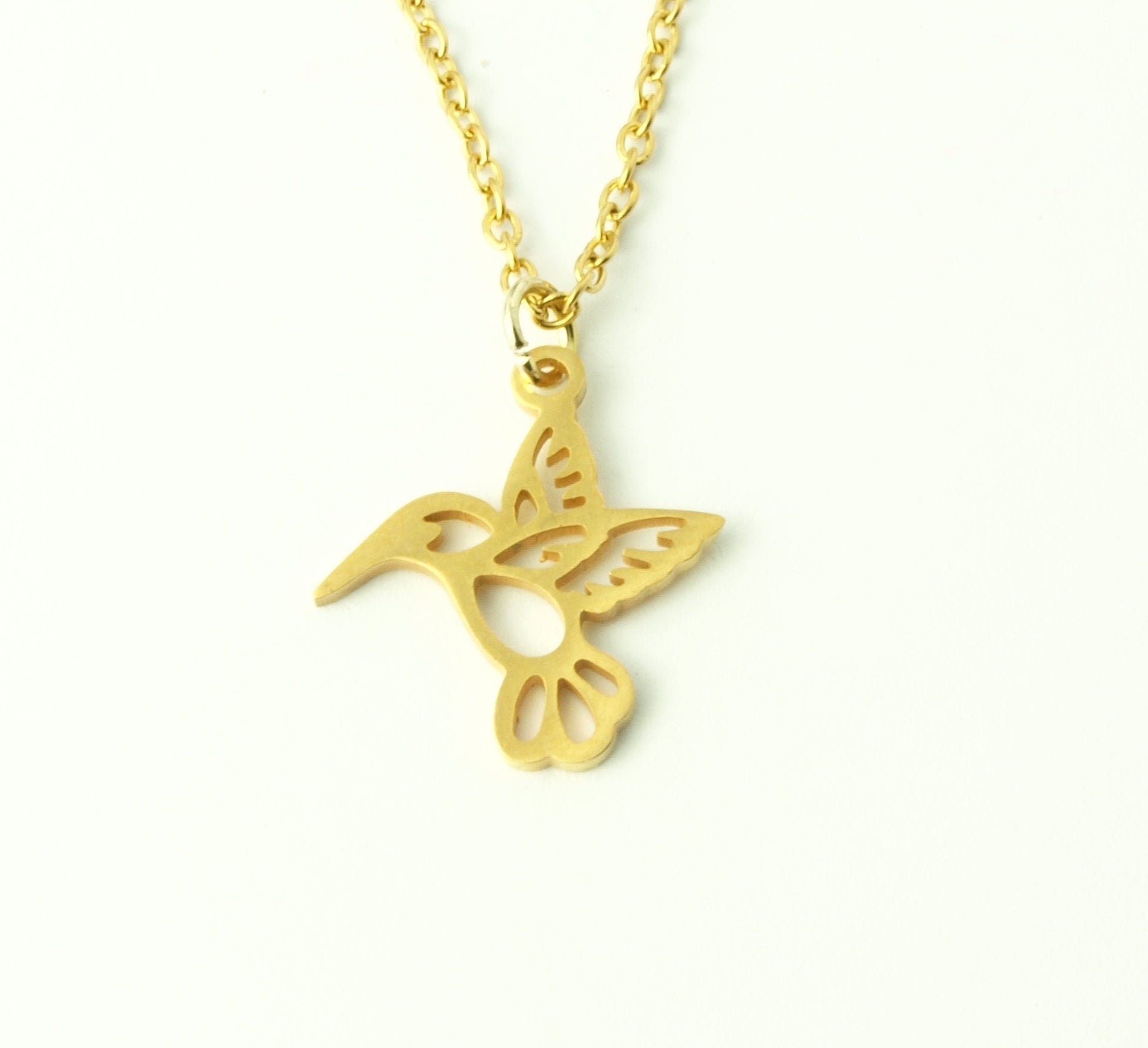 Kette Kolibri Vogel verziert Edelstahl Anhänger golden