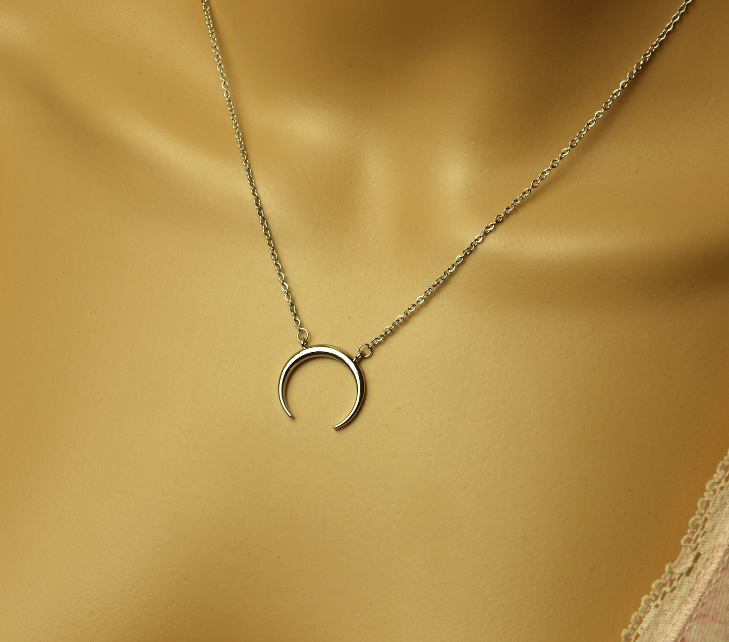 Silberne Edelstahl Kette mit einem Anhänger in Form eines kleinen Mondes.