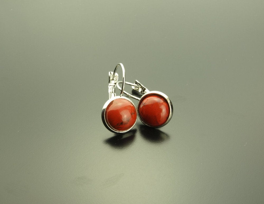 Ohrringe Jasper Cabochon Brisur silber rot Jaspis