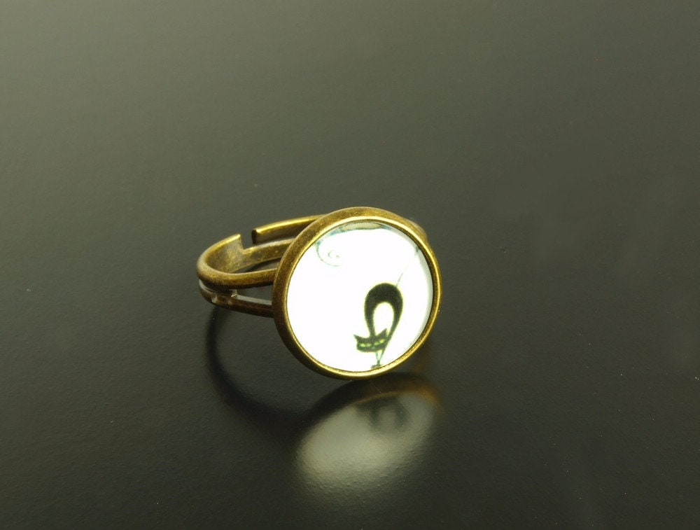 Ring Silhouette Katze schwarz weiß Glas bronze