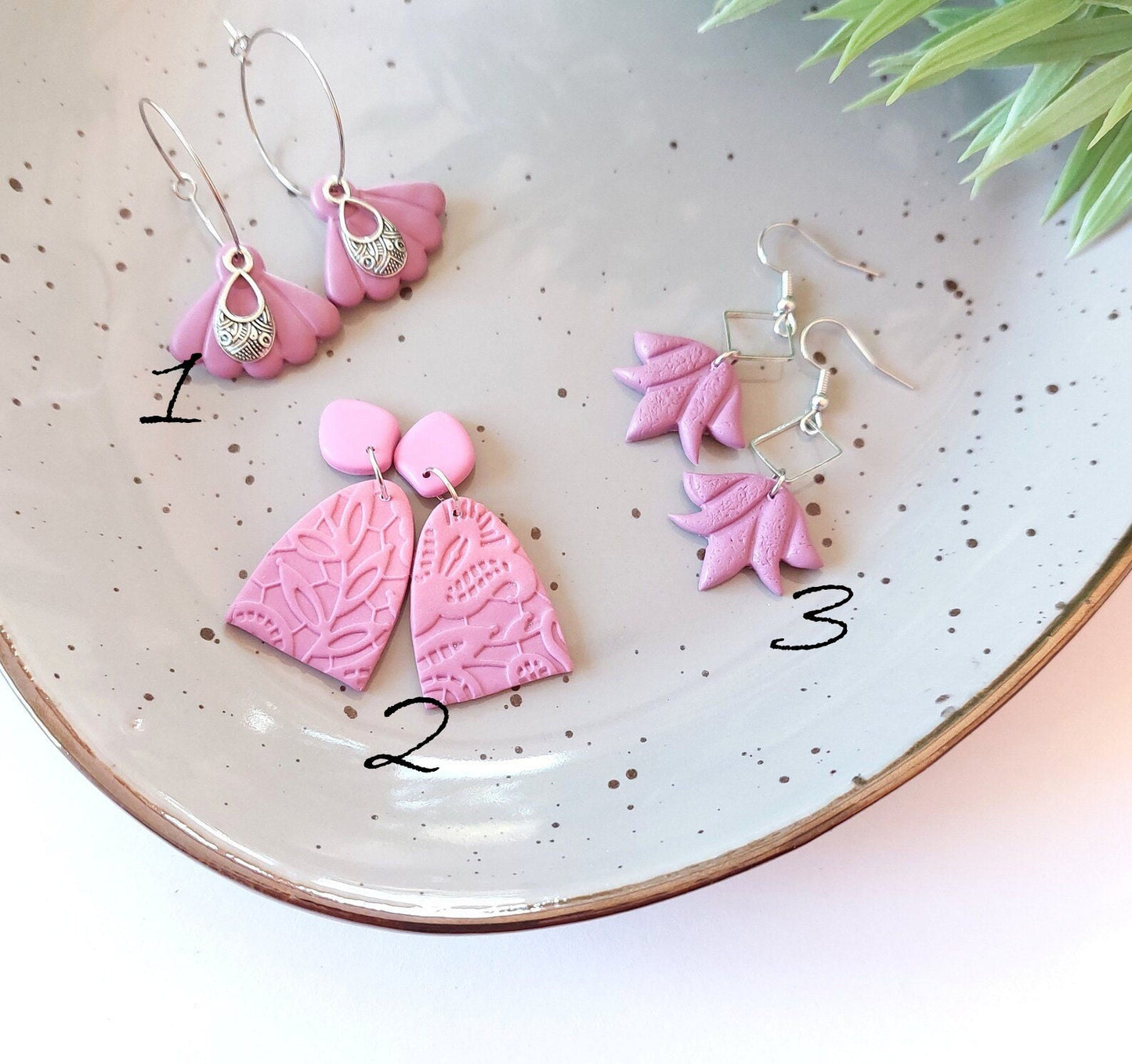 Statement Ohrringe Polymer Clay orientalisch rosa pink Blätter nach Wahl